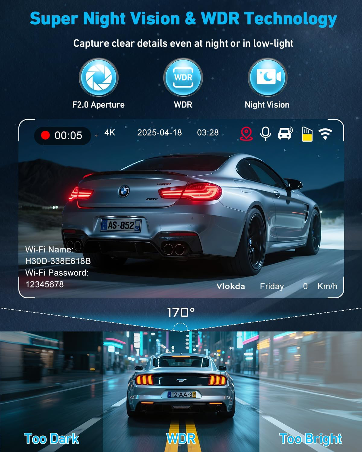 Hot 4k Ultra Hd Car Dash Camera Wifi Night Vision Parking Monitor Loop Recording Car Camera for Taxi Drivers With Built in Gps
